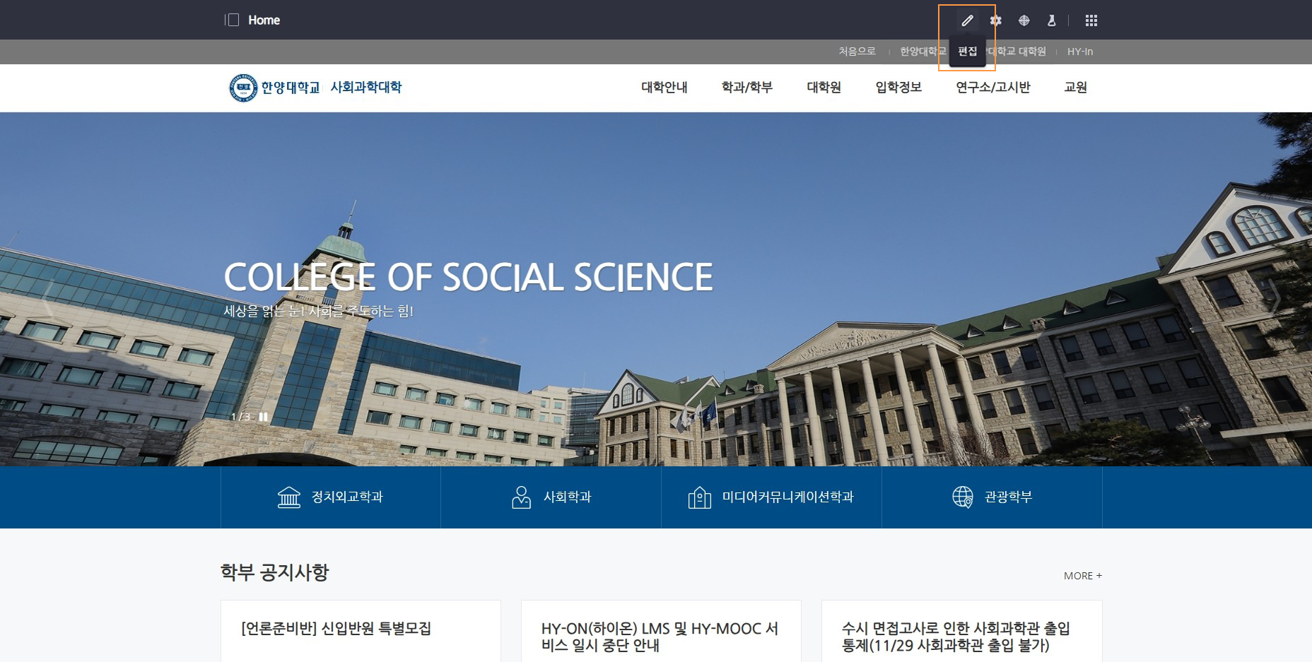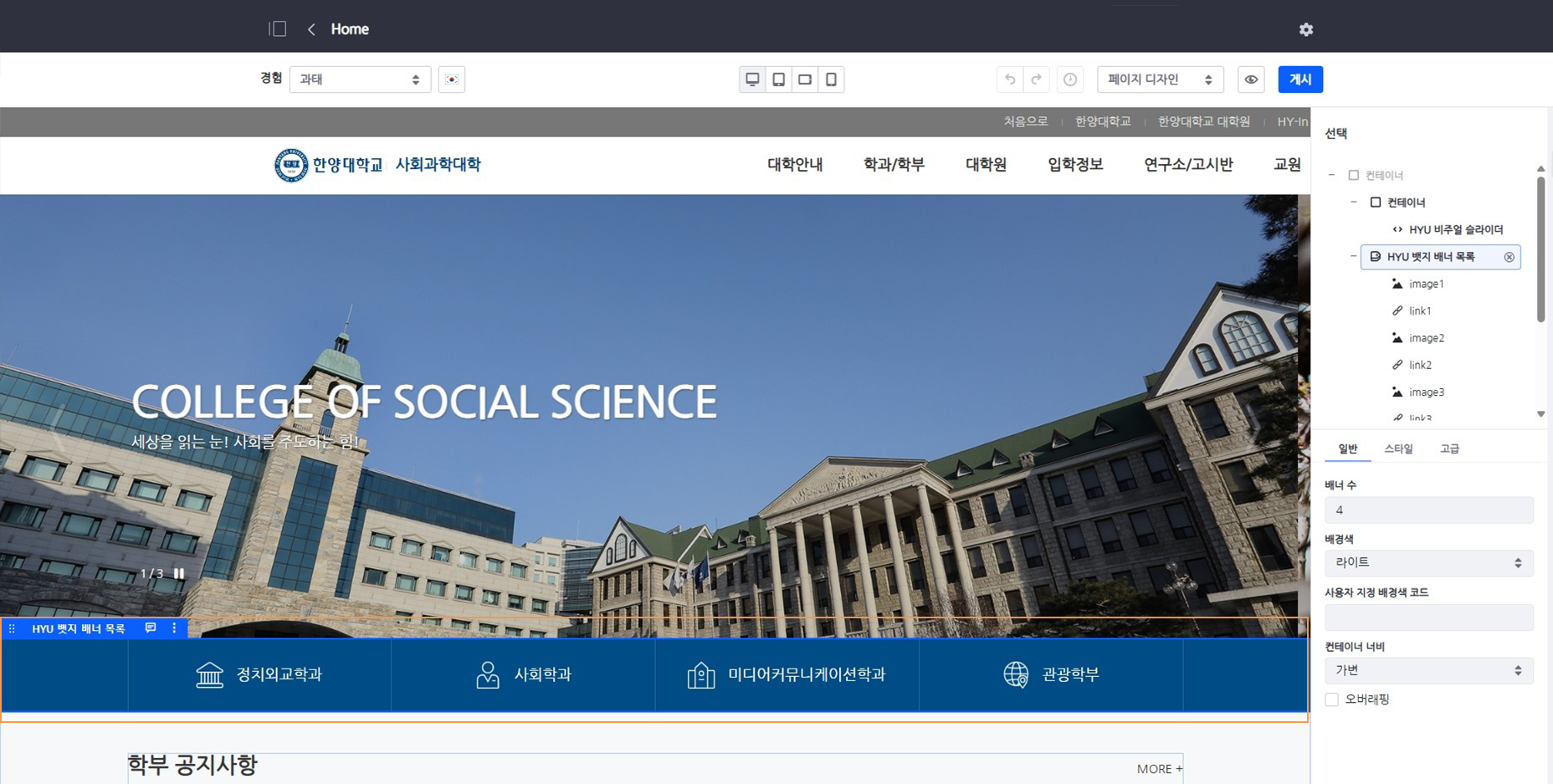 메인 페이지의 배너 영역 수정 방법 안내입니다.