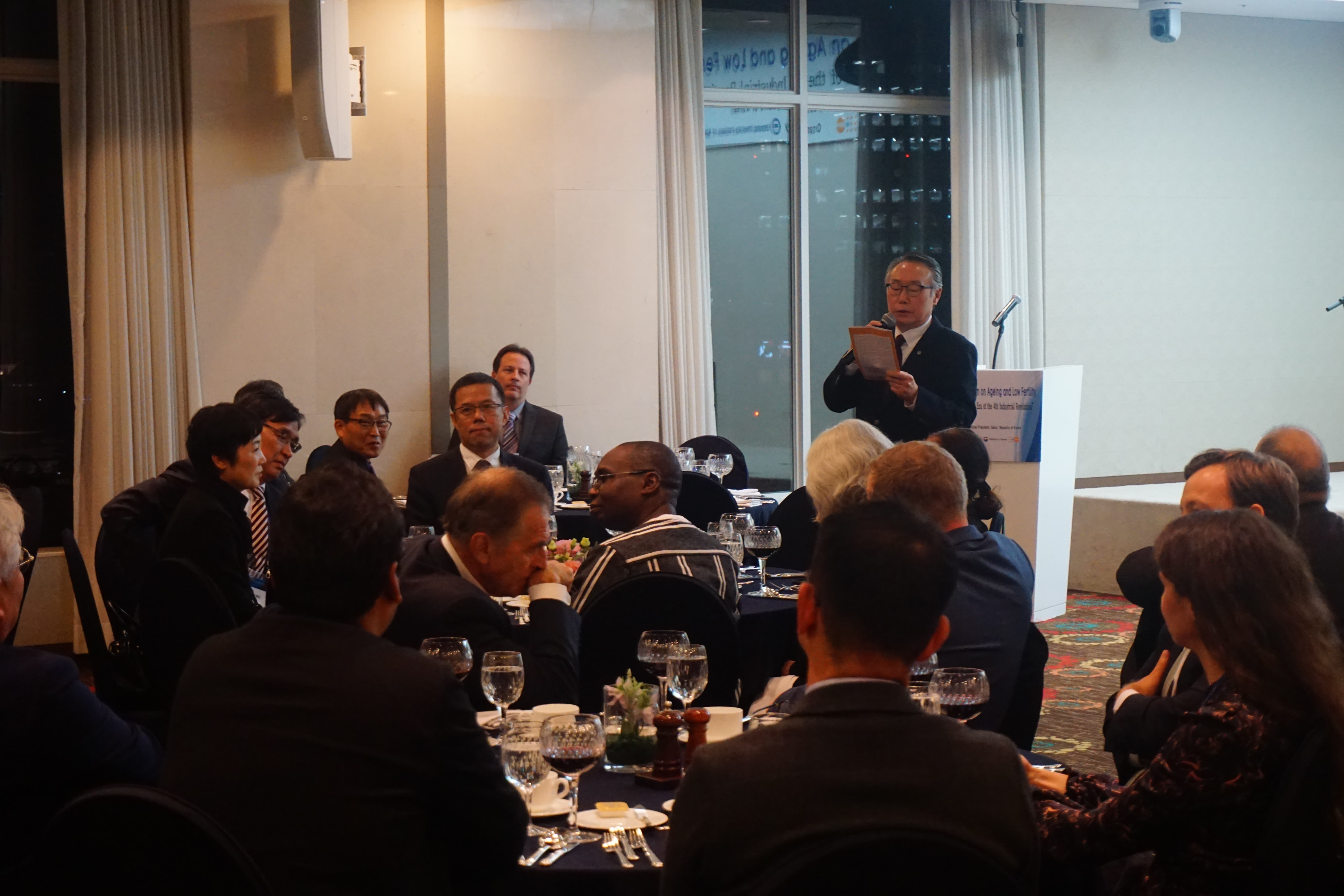 2019년 12월 2일(월)~12월 3일(화) 서울 프레지던트호텔에서 개최된 2019 저출산·고령화 국제 심포지엄 1일차 저녁 만찬 사진입니다.