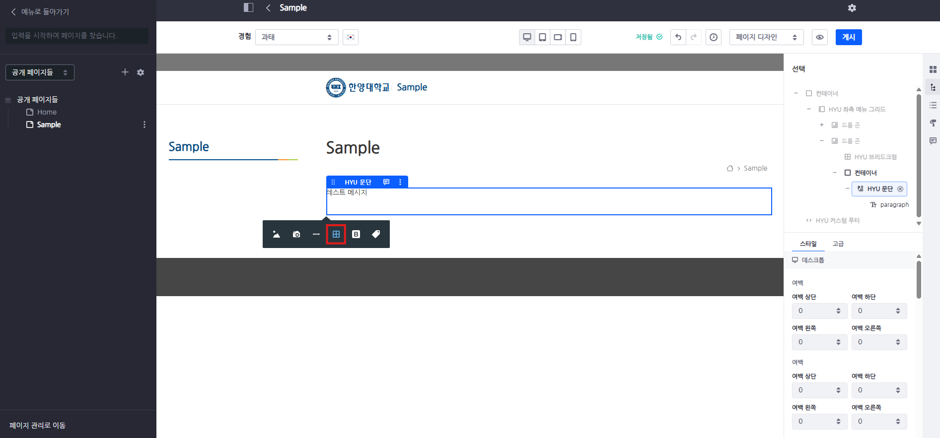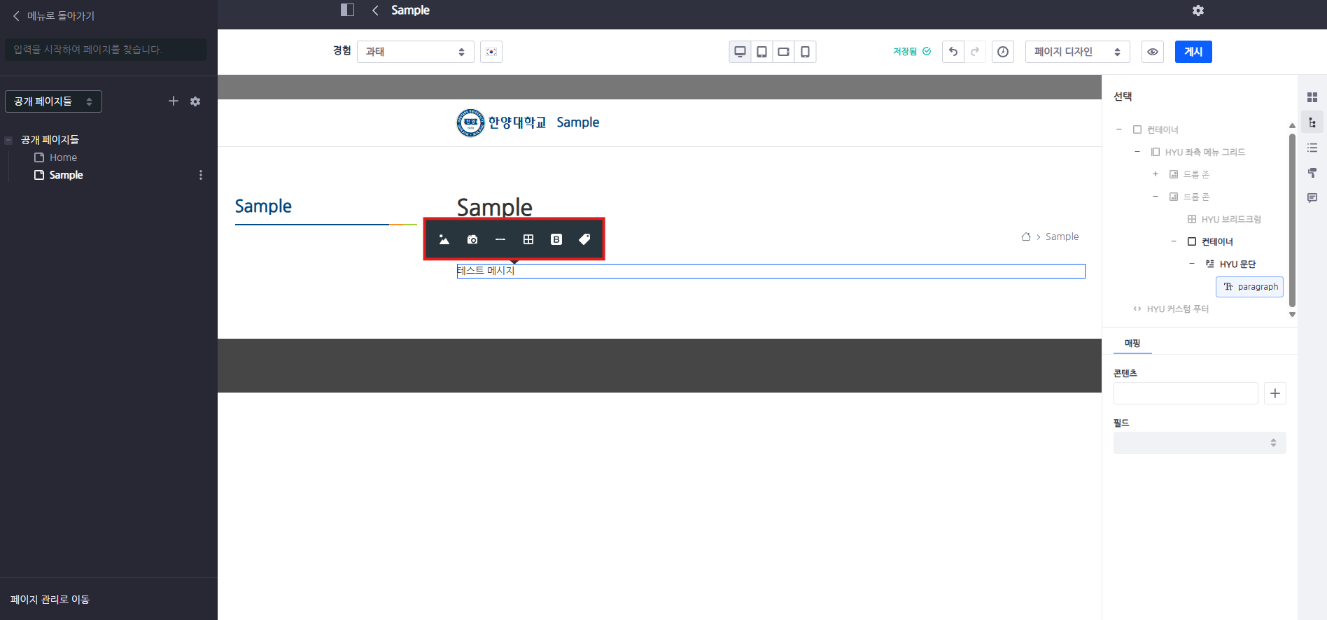 HYU 문단 및 각종 텍스트 프래그먼트에 콘텐츠 삽입 시 사용