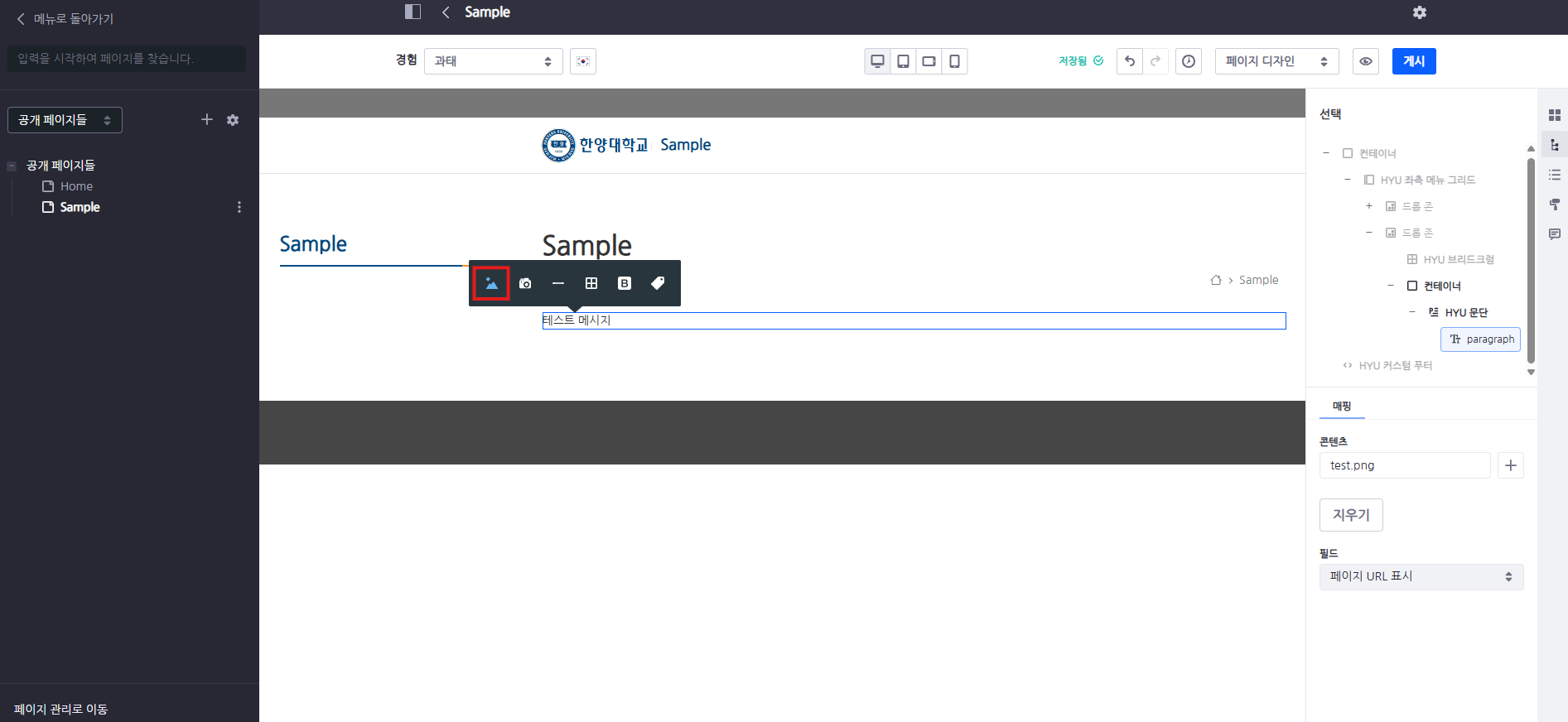 ① '이미지 삽입' 아이콘을 클릭하면 해당 프래그먼트 영역 내부에 이미지를 추가할 수 있습니다.