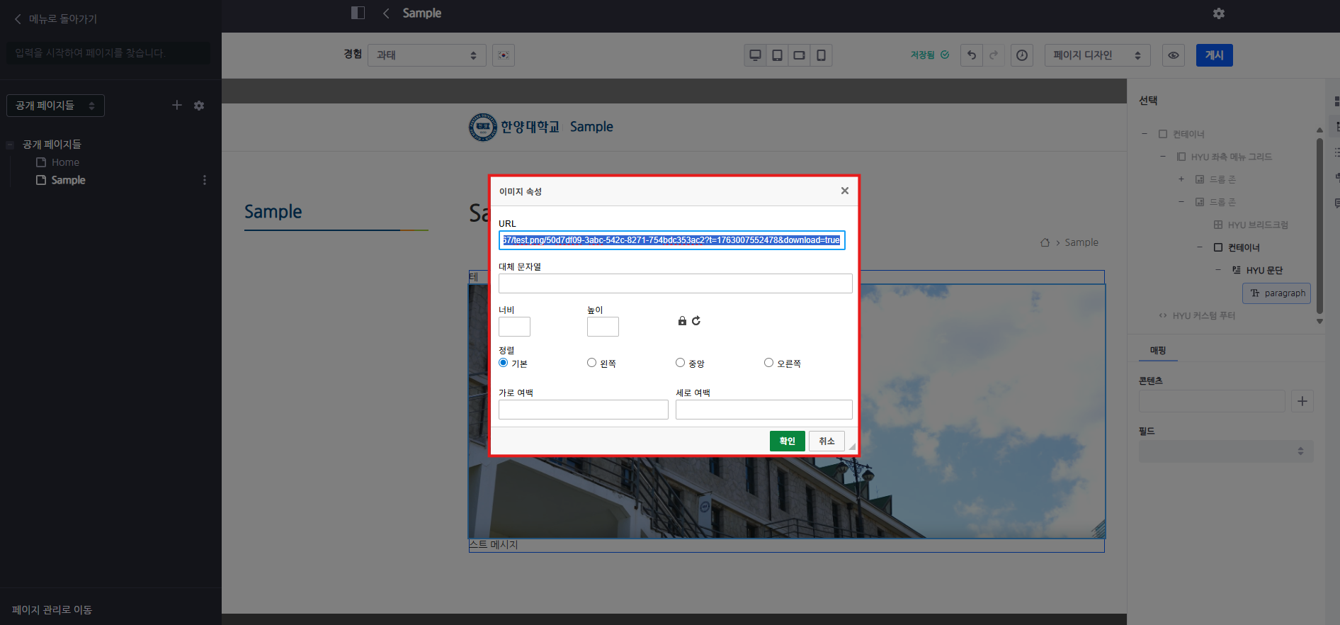 - 정렬: 이미지의 정렬 방식 설정