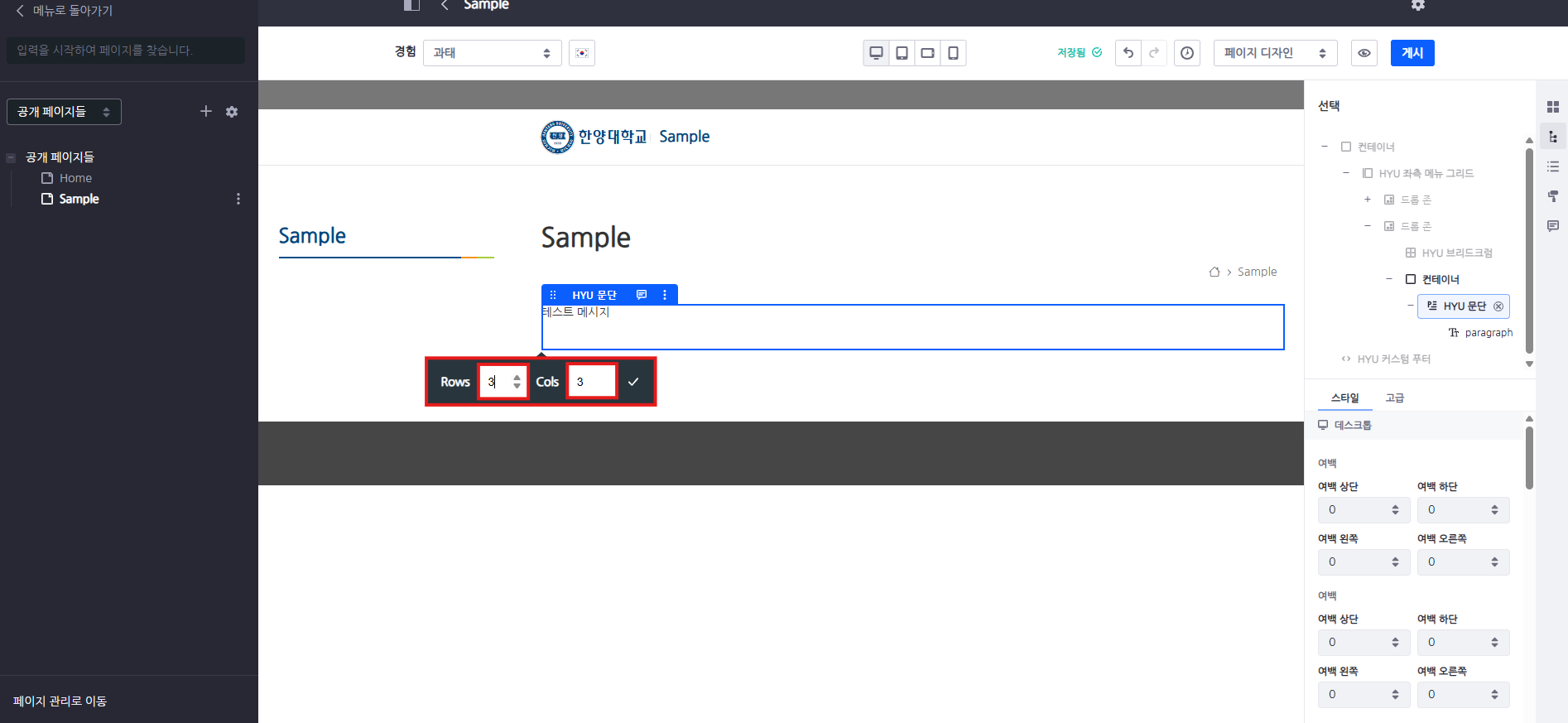 ※ 테이블 수정 방식은 기존 HYU 테이블과 동일합니다.
