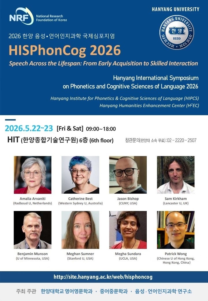 Hanyang International Symposium on Phonetics and Cognitive Sciences of Language 2026 (22-23 May, 2026)